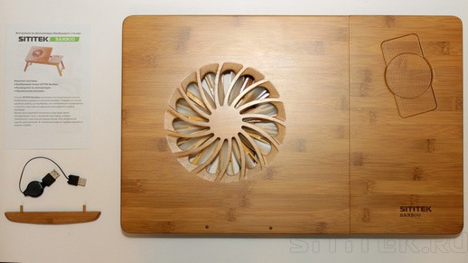 Обдув ноутбука вентилятором, встроенным в столик "SITITEK Bamboo 1", происходит через решетку, вырезанную в столешнице